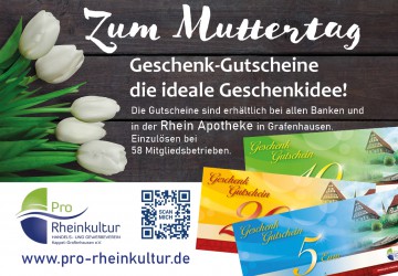 Zum Muttertag - Geschenk-Gutscheine, die ideale Geschenkidee! Die Gutscheine sind erhältlich bei...